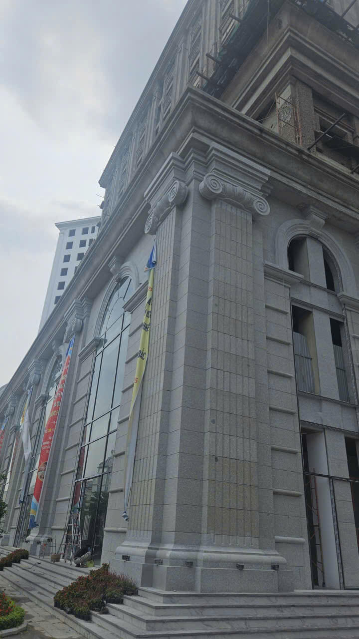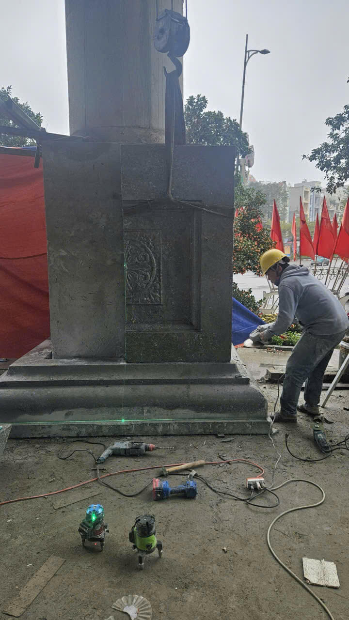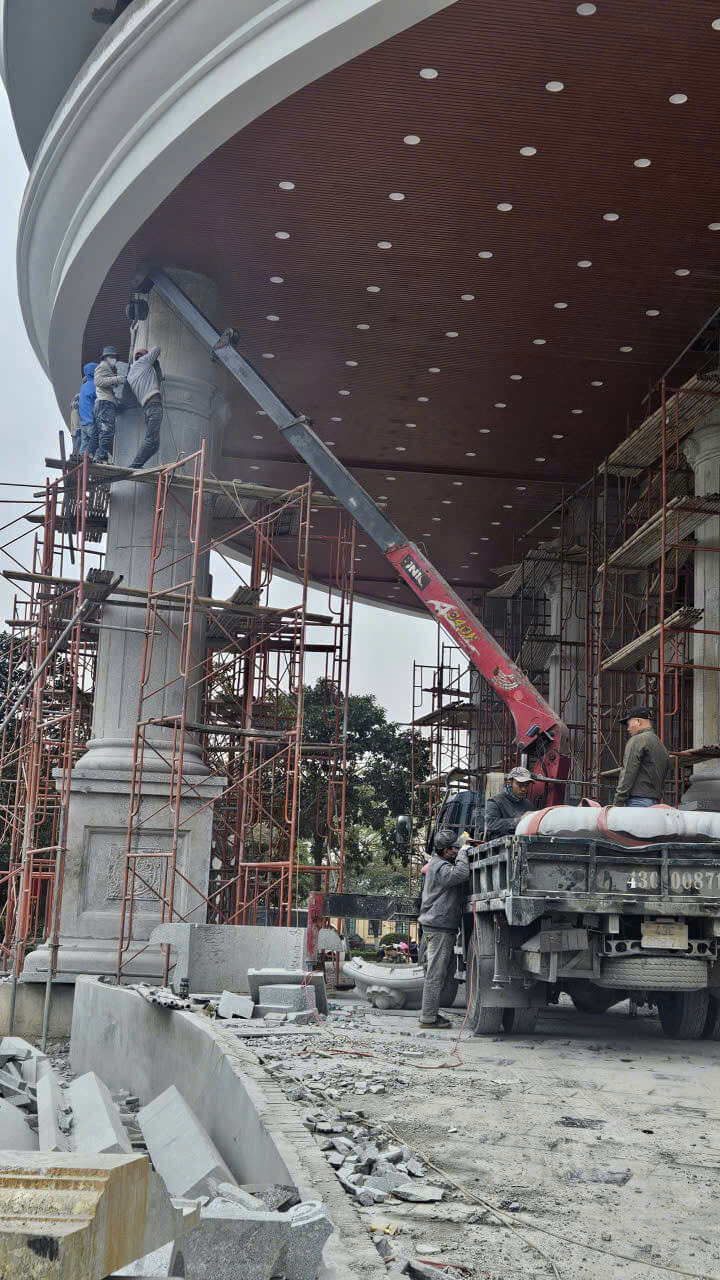 Lắp đặt đá phào chỉ vòm công trình Bắc Ninh