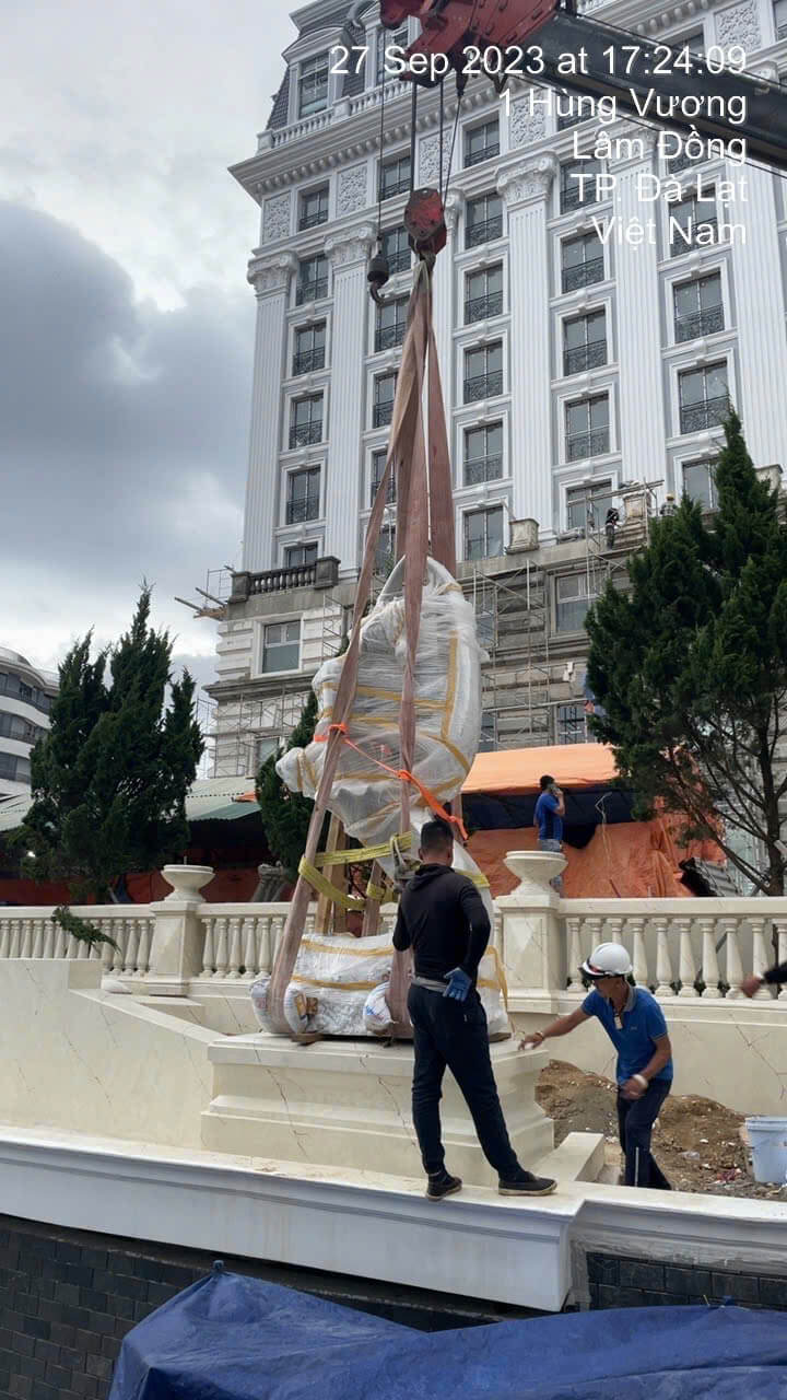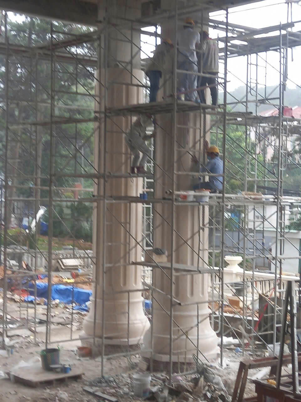 Lắp đặt đá phào chỉ vòm công trình Bắc Ninh